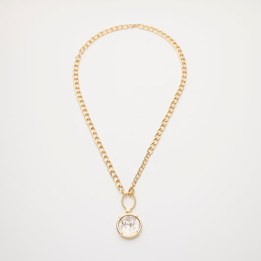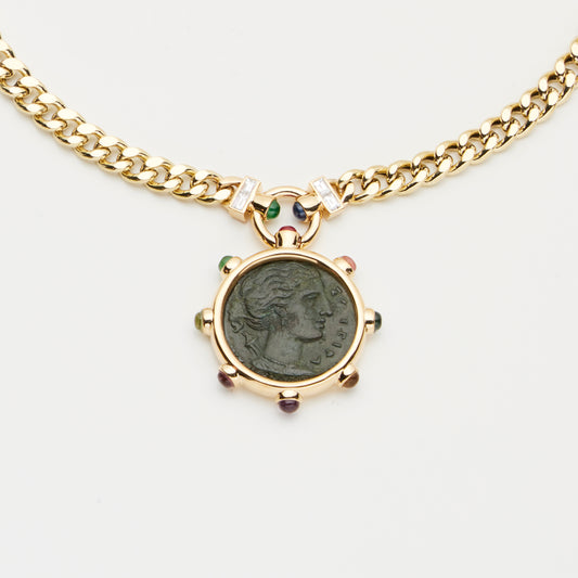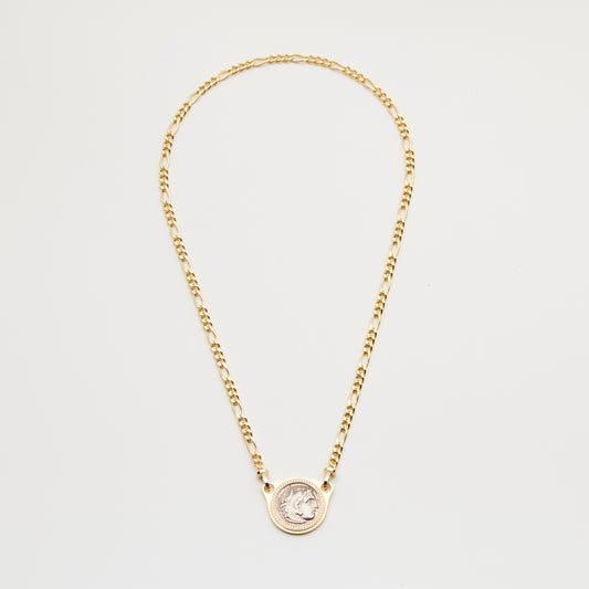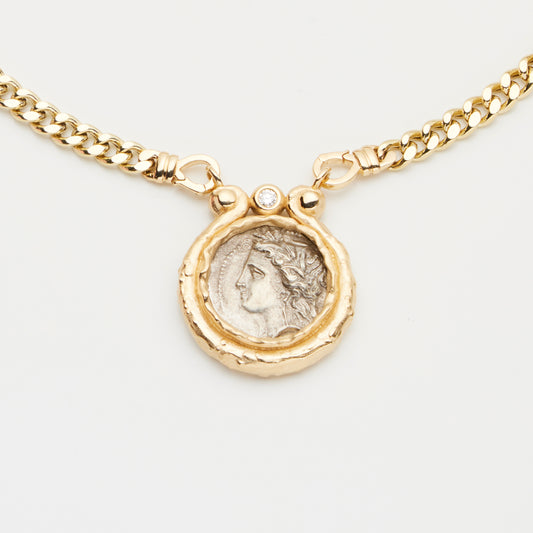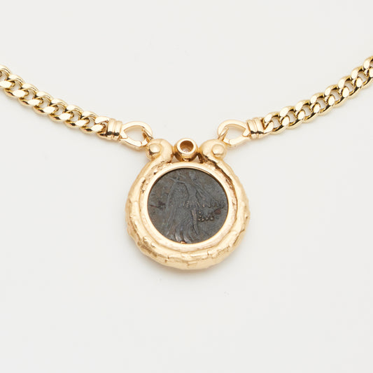 18K Gold Alexander The Great Coin Necklace w/ Diamond