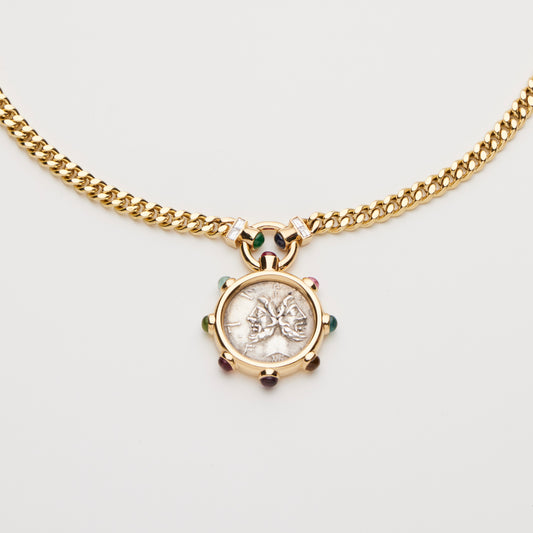 All our jewelry is handcraft of solid 18k gold, sterling silver and high quality natural gemstones. This unique series draws inspiration from the rich cultural and historical legacy of ancient Greek and Roman coins. Through the clever integration of modern jewelry craftsmanship, we blend the symbolic meaning of ancient currencies with contemporary fashion elements, creating jewelry that is both culturally profound and aesthetically modern. Each piece is not just an artistic expression but also a tribute to history and a beautiful wish for the future.