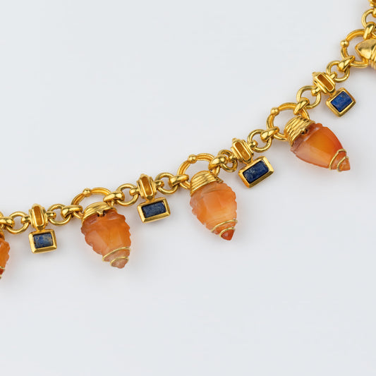 18K Gold 'Arrowhead' Carnelian & Ancient Lapis Lazuli Necklace