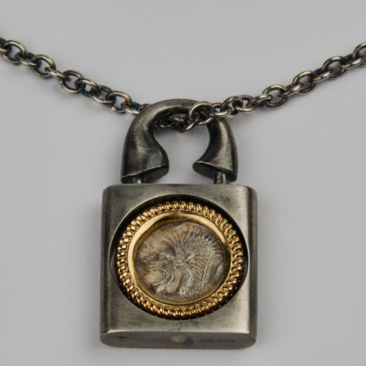 Silver/ 18K Gold Padlock Pendant Necklac