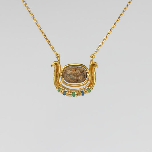 18K Gold Egyptian Revival Rotating Scarab Necklace