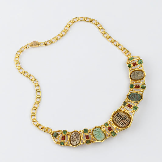 18K Gold 'Council of Scarabs' Multi-Gemstone Necklace
